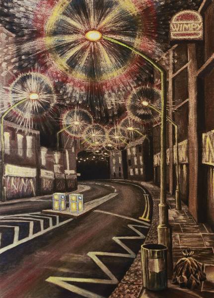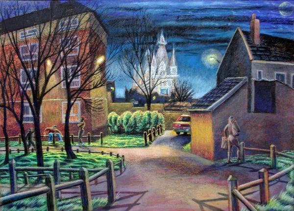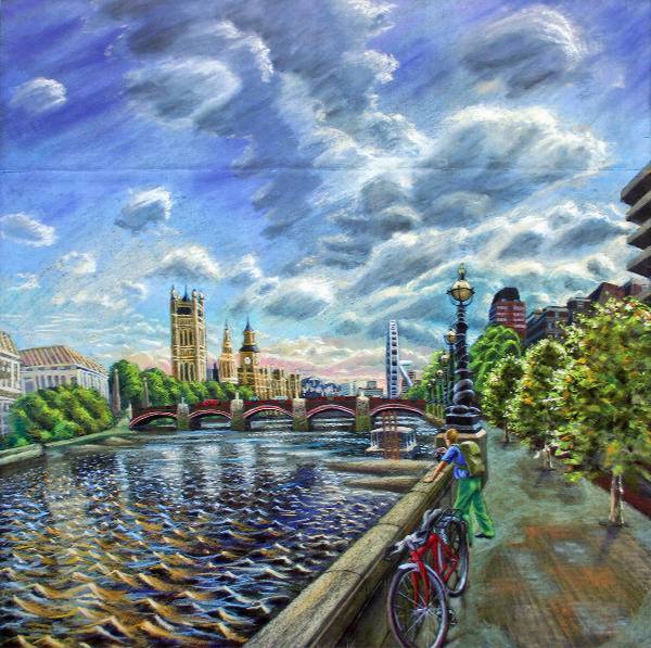 Urban landscapes drawn/painted on location, mostly in artist's pigment- pastels.
