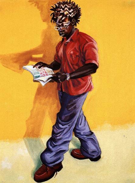 Conventional portraits with photographic references are re-invented in these works through drawing painting, and constructed composition, using heightened colour and narrative and symbolic images added to give clues as to who the subject is, and what do they do and know.