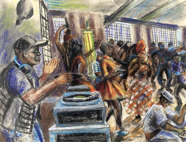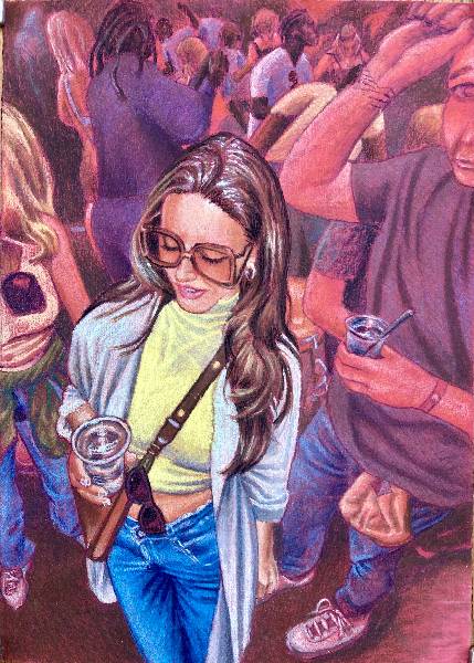 Pastel On Paper 27cm x 47cm. 2014. Made with reference to skecthes and photo-snaps made at The Hi Hat Jazz-Dance Club at The Jazz Cafe, Camden circa 1999/2000.